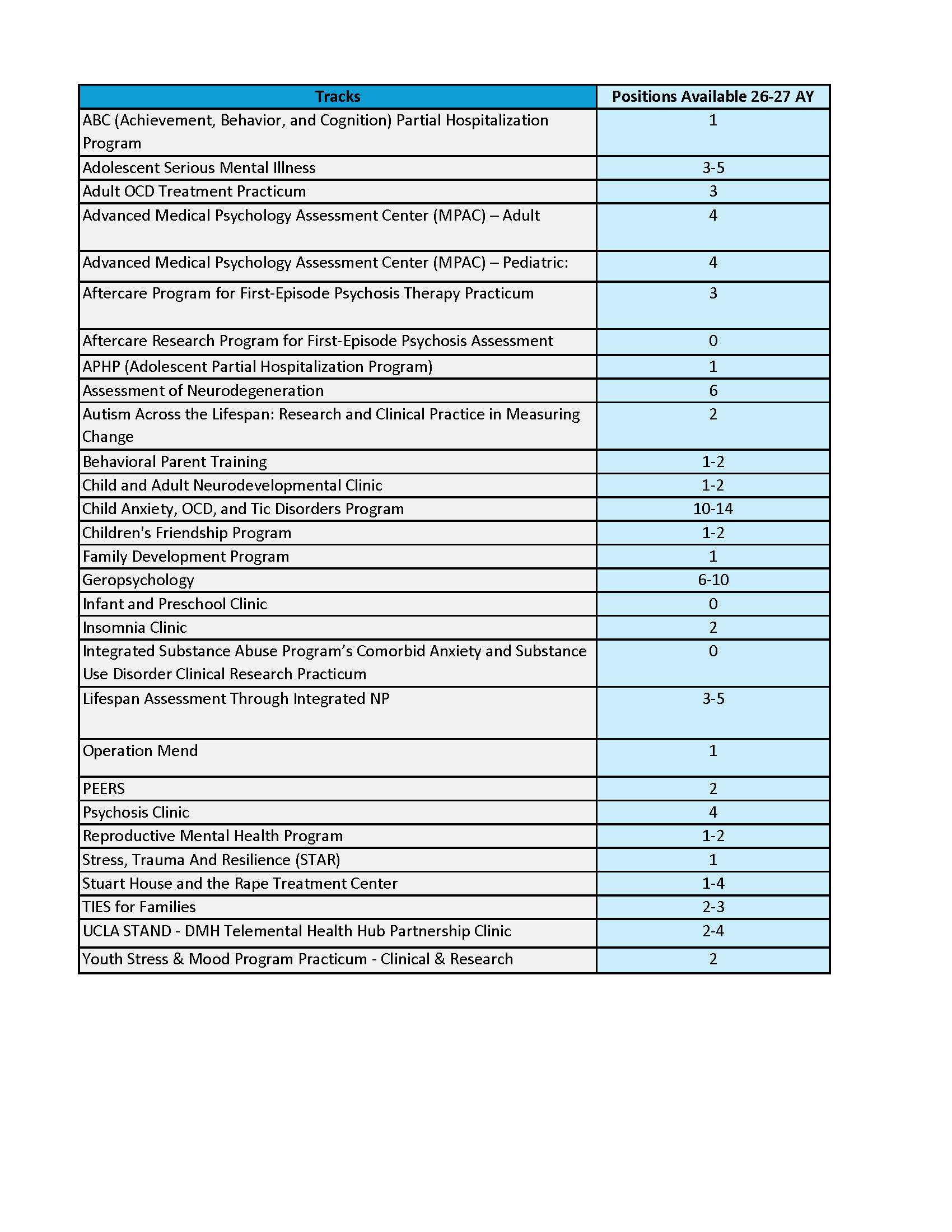 Applications for the 2026-2027 cycle open on December 1, 2025. Please see # of available positions per track below.